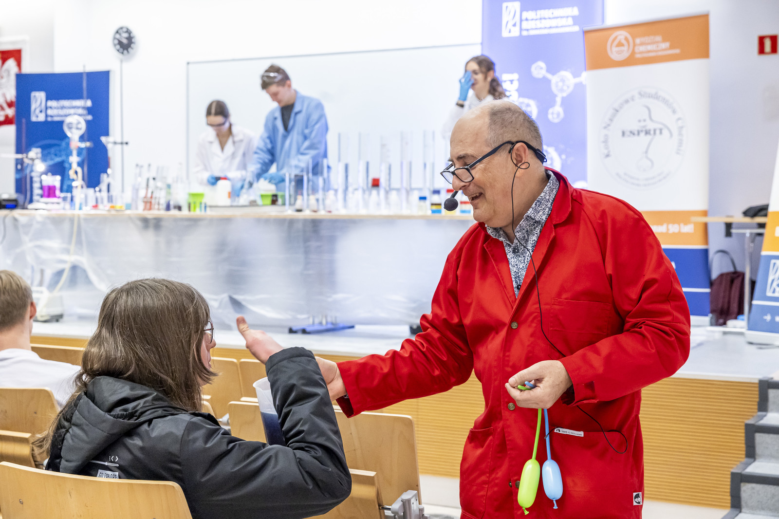 Wydarzenie uświetniły ciekawe pokazy przygotowane przez koła naukowe działające na naszej uczelni. Koło Naukowe „ESPRIT” z Wydziału Chemicznego zapewniło wiele „wybuchowych” niespodzianek, Koło Naukowe „FOTON” z Wydziału Matematyki i Fizyki Stosowanej zademonstrowało wybrane prawa i zjawiska fizyczne. W ramach pokazów uczniowie mogli również dowiedzieć się więcej na temat „Spintroniki – nadchodzącej rewolucji w elektronice”, o czym opowiedział dr inż. Michał Inglot z Wydziału Matematyki i Fizyki Stosowanej.