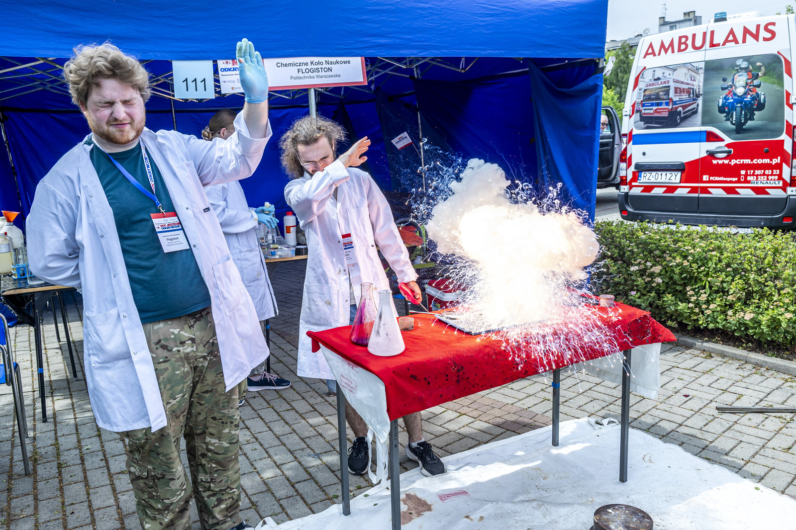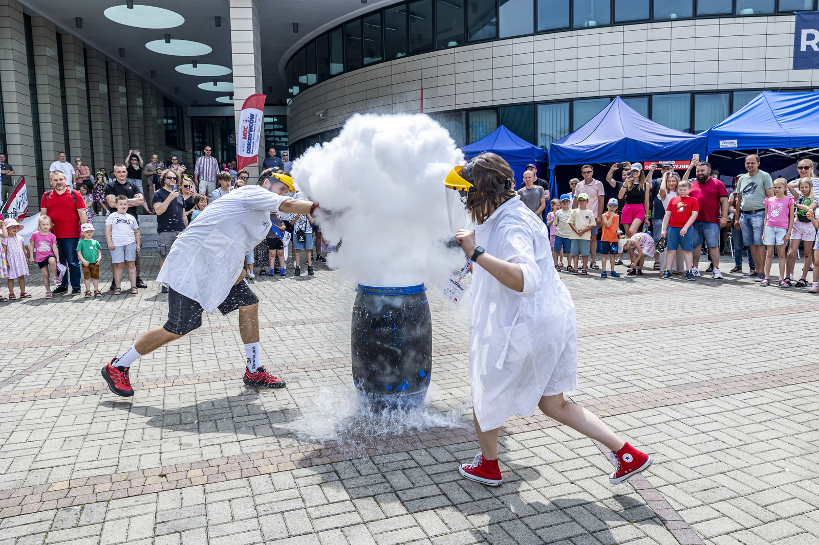 Na miłośników wybuchowych atrakcji czekali studenci Koła Naukowego „ESPRIT”, którzy przygotowali spektakularne pokazy chemiczne. Uczestnicy mogli również wysłuchać ciekawych wykładów –„Kosmiczną archeologię” opisywała Magdalena Ithilnar Stawniak, postać „Wyspiańskiego – Odkrywcy” przybliżyła Jolanta Bobala, a o „Prompt engineering, czyli jak dogadać się ze sztuczną inteligencją?” opowiedział Marcin Krawczyk. Mali i duzi odkrywcy spotkali się również z Magda „Cathia” Kozłowska zabrała małych i dużych odkrywców w podróż po galaktyce w ramach prelekcji nt. „Gwiezdnowojenna droga bohatera, czyli monomit w Gwiezdnych Wojnach”. Pokazy fizyczne Koła Naukowego FOTON („Jak fizyka wprawia świat w ruch”) oraz pokazy wysokich napięć i galeria lamp plazmowych Teslacoil jak zawsze przyciągnęły tłumy widzów. Na „Noc z gwiazdami”, czyli na finałowy pokaz pikniku zaprosili Małgosia Wilczak i Paweł Pasterz wraz z gościem specjalnym Maciejem Milczanowskim.