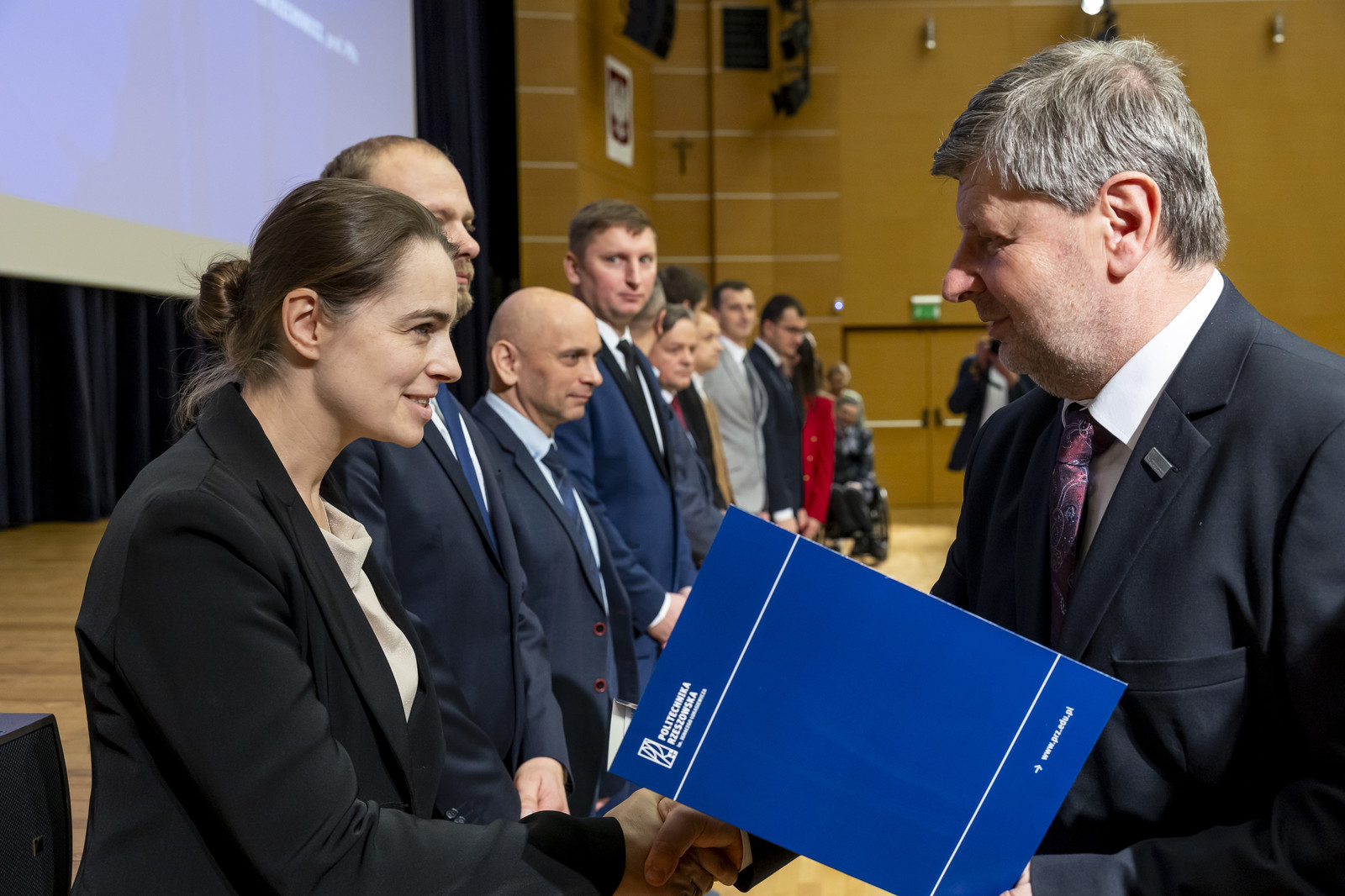 Uroczystość poprowadził prorektor ds. nauki dr hab. inż. Lesław Gniewek, prof. PRz. Dyplomy nagród wręczył rektor prof. dr hab. inż. Piotr Koszelnik. w towarzystwie dziekanów.