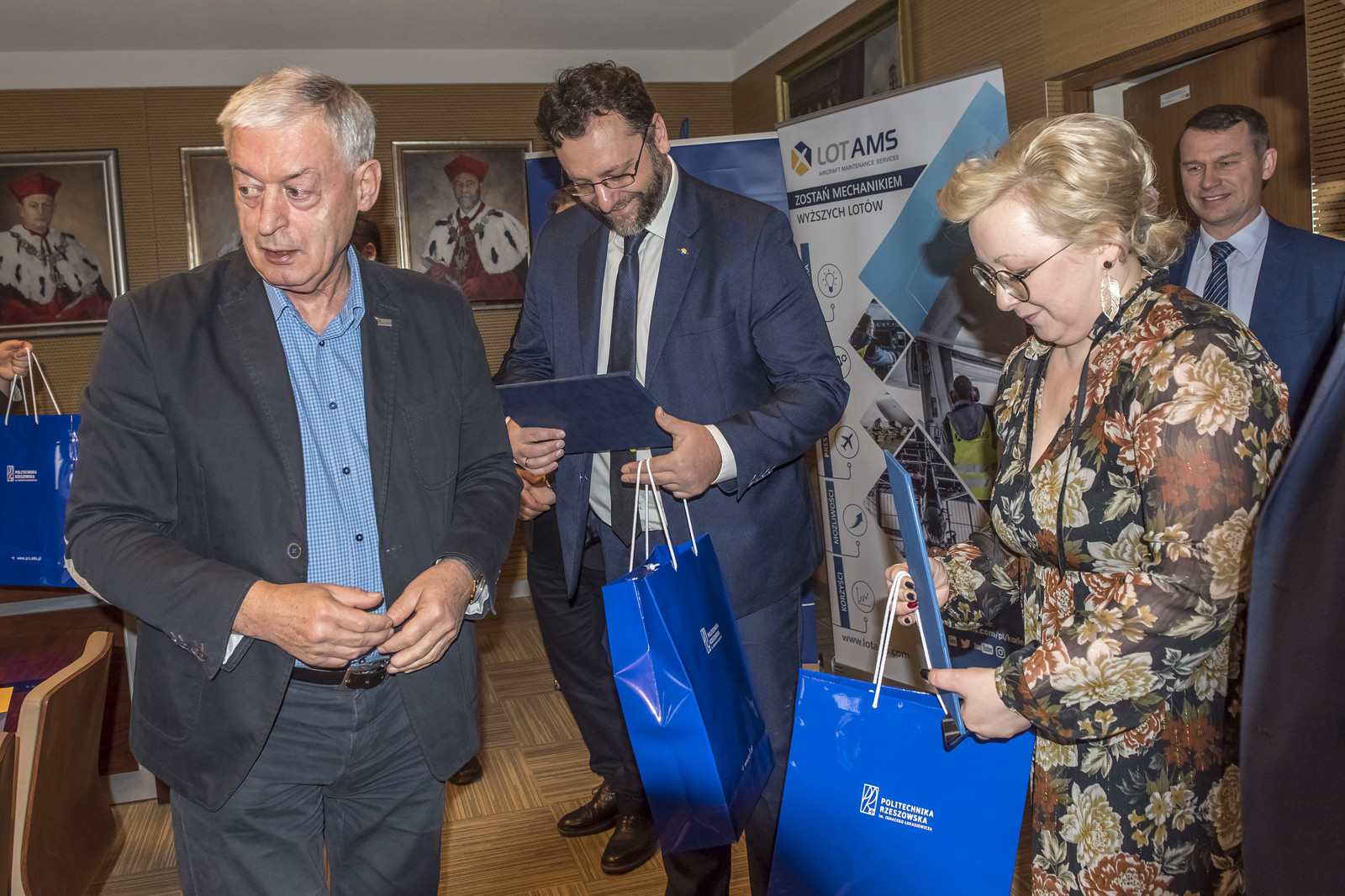 Umowę podpisali prof. dr hab. inż. Tadeusz Markowski, Rektor Politechniki Rzeszowskiej i Marcin Kwietniak, Dyrektor Biura Marketingu w LOT Aircraft Maintenance Services Sp. z o.o.