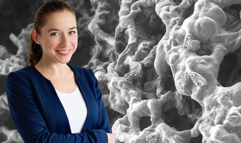 Tematyka badań naukowych prowadzonych przez dr inż. Agatę Skwarczyńską dotyczy kompozytowych biomateriałów do zastosowań w inżynierii tkankowej. Dr Skwarczyńska opracowała oryginalny sposób wytwarzania scaffoldów chitozanowych zawierających Ca i P z przeznaczeniem jako scaffoldy do hodowli komórkowej osteoblastów.