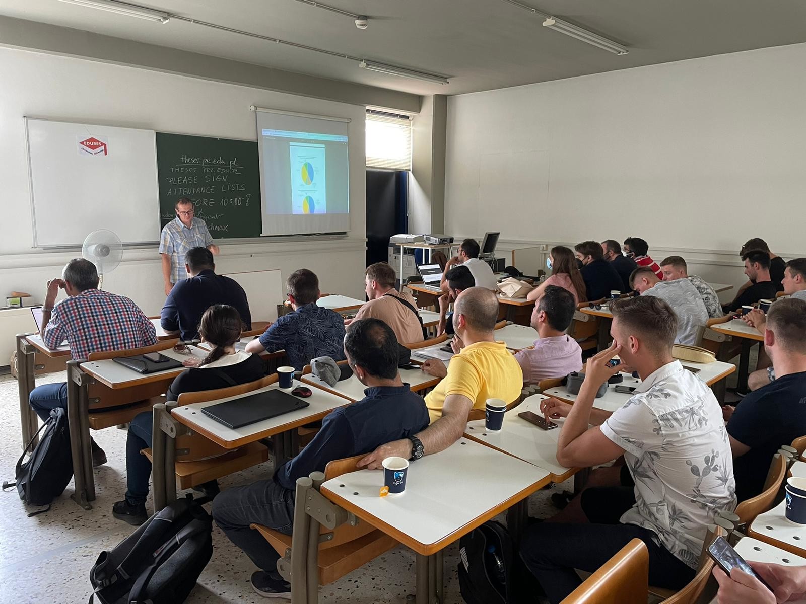Drugie szkolenie odbyło się 6–10 czerwca 2022 r. w Atenach (Grecja). Siedemnastu studentów Wydziału Budowy Maszyn i Lotnictwa oraz Wydziału Budownictwa, Inżynierii Środowiska i Architektury wzięło udział w warsztatach oraz wykładach prowadzonych przez zespół międzynarodowy z Politechniki Rzeszowskiej, Narodowego Uniwersytetu Technicznego w Atenach (Grecja), Uniwersytetu w Furtwangen (Niemcy) i firmy Centoform (Włochy). Szkolenie odbyło się w ramach projektu „EDURES: Technology education in the Digital era supported by the significant use of research results”. Podczas zajęć studenci mieli możliwość poznania specyfiki edukacji opartej na prowadzonych badaniach naukowych oraz dyskusji na temat nowych metod kształcenia, badań naukowych, opracowywania publikacji. Studenci mogli też podnieść swoje kompetencje językowe. W wydarzeniu wzięli udział także nauczyciele akademiccy i nauczyciele centrum VET (dwie osoby z Politechniki Rzeszowskiej, dwie osoby z uczelni w Furtwangen, dwie osoby z centrum VET Centoform we Włoszech oraz pracownicy uczelni goszczącej z Grecji), którzy mieli możliwość doskonalenia swoich umiejętności w zakresie dydaktyki w ramach ćwiczeń i wykładów oraz współpracy i dyskusji z pracownikami dydaktycznymi z zagranicy. W ramach spotkania możliwe było także omówienie dalszej współpracy międzynarodowej. Nasi studenci byli bardzo zadowoleni z możliwości wzięcia udziału w tego typu wydarzeniach międzynarodowych.