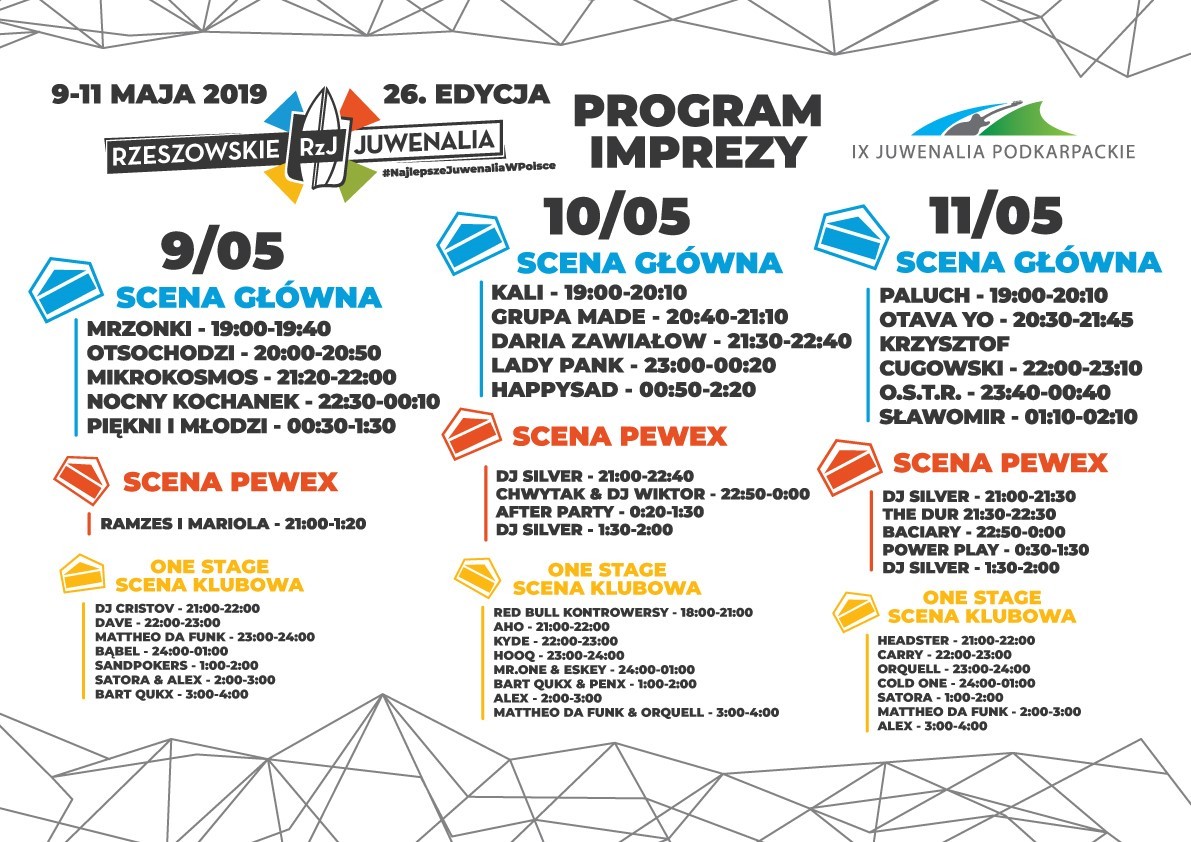 Szczegółowy program artystyczny Rzeszowskich Juwenaliów 2019 znajduje się w załączniku oraz na stronie Rzeszowskich Juwenaliów.