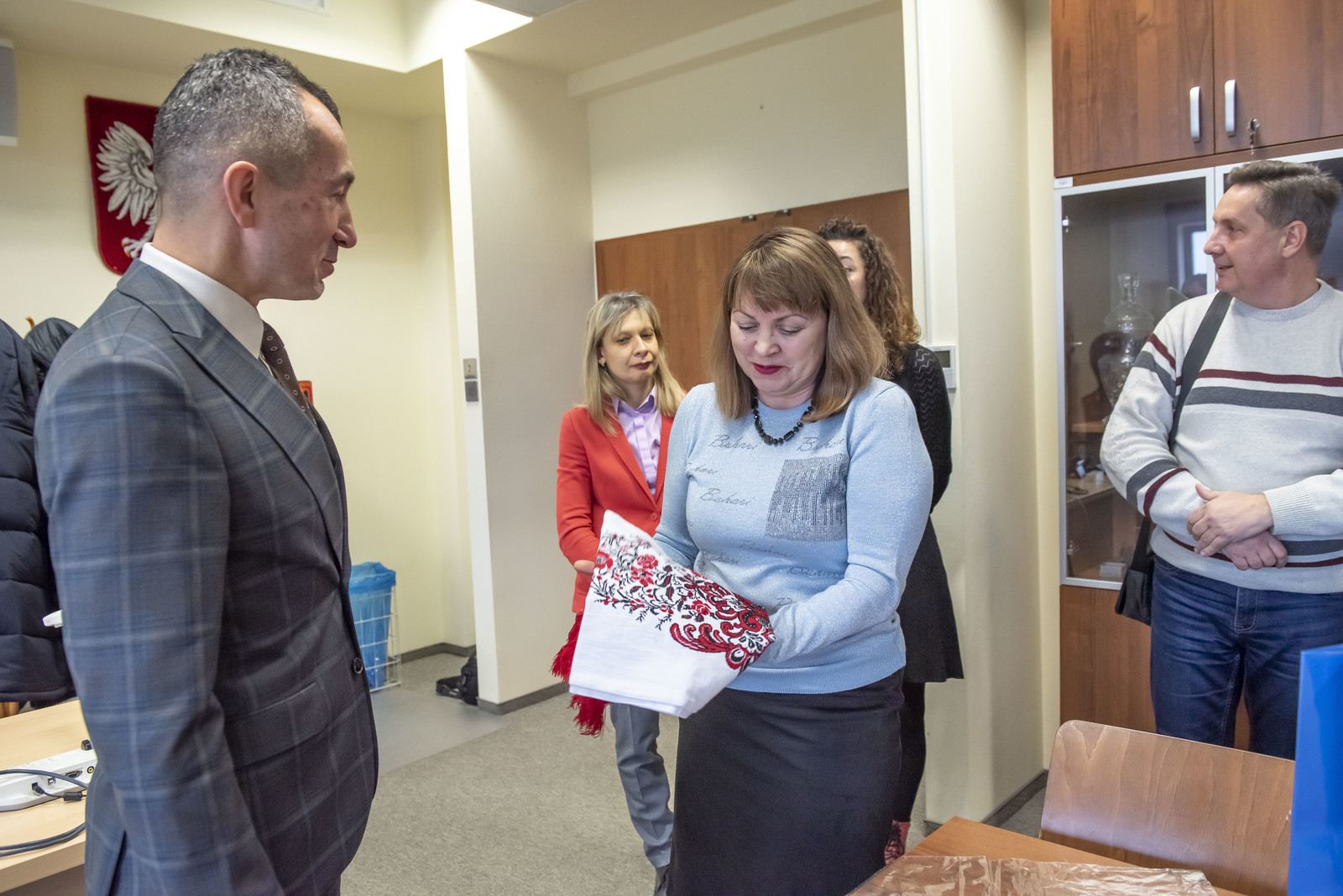 W imieniu władz uczelni gości przywitał prorektor ds. studenckich prof. dr hab. Grzegorz Ostasz, kierownik Katedry Nauk Humanistycznych i Społecznych na Wydziale Zarządzania, który przedstawił atuty naszej uczelni, jej cele i wartości, doświadczenia i przykłady dobrych praktyk współpracy międzynarodowej. Wręczył gościom upominki Politechniki Rzeszowskiej, a dr Larysa Lysak przekazała na ręce prorektora tradycyjnie wyszywany ukraiński rusznyk oraz monografię Akademii. Opiekunem delegacji z ramienia naszej była dr Alla Karnaukh-Brożyna z Katedry Nauk Humanistycznych i Społecznych na Wydziale Zarządzania.